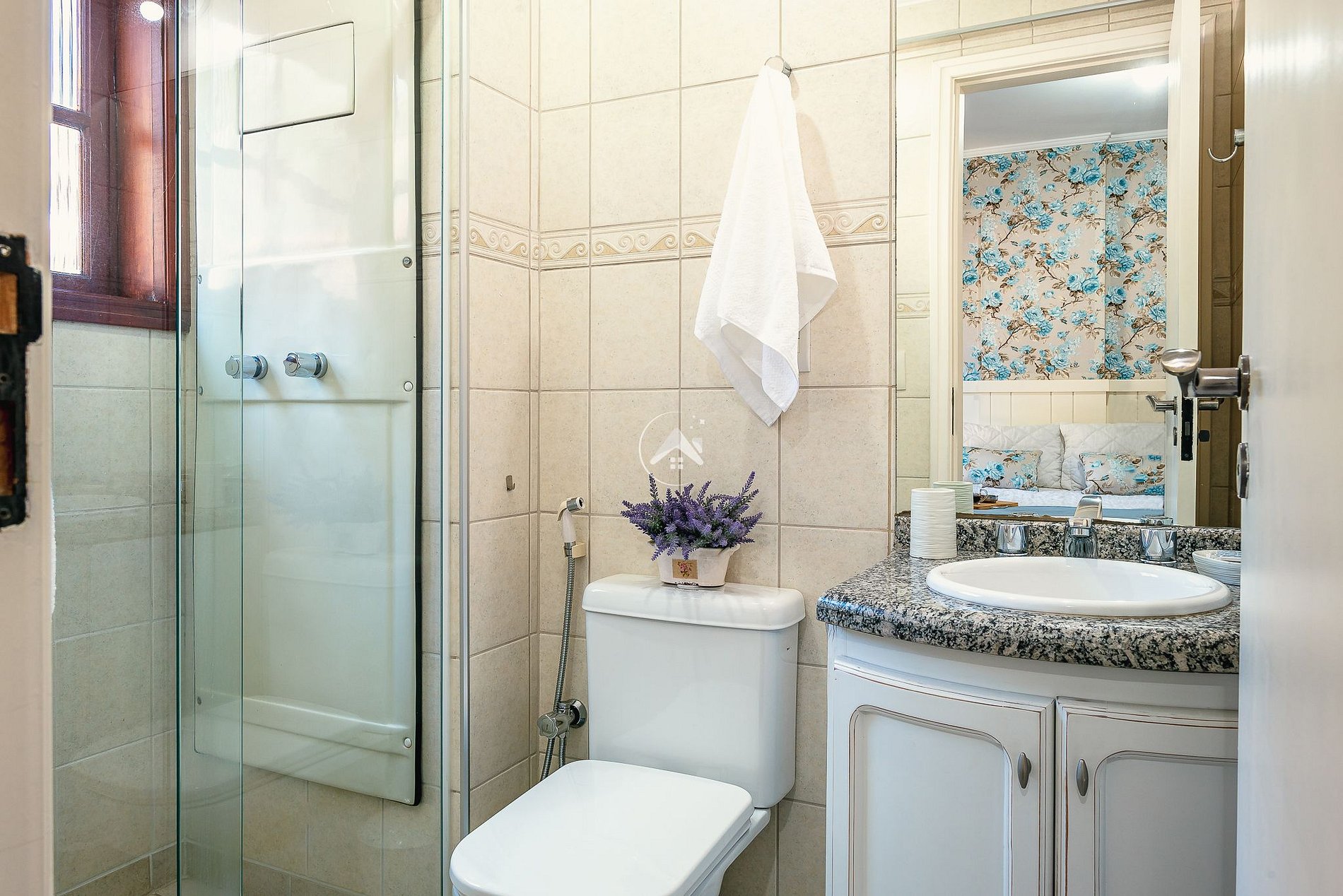 A suíte conta com terraço fechado com vidro articulado. Há armários em todos os quartos. Além do banheiro da suíte, há um segundo banheiro no corredor para atender aos hóspedes. Deixamos à disposição secador de cabelos.