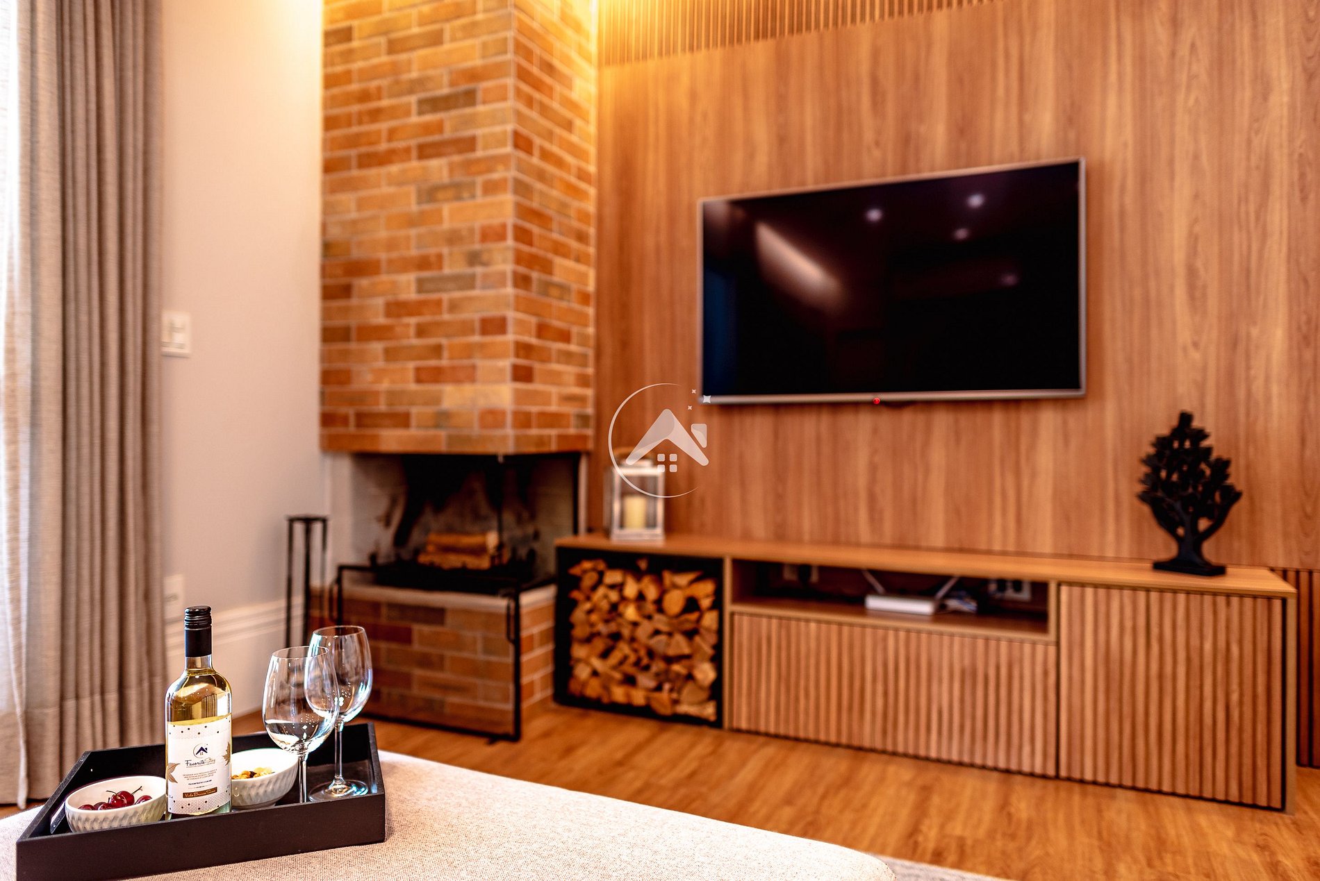 Para os dias mais frios, o cantinho da lareira é perfeito para abrir um vinho e aproveitar a companhia de quem está junto. Assistir a um filme ou série na Smart TV , após um dia de passeios, também é uma ótima ideia. Aplicativos como Netflix, Amazon Prime, Disney+, Globoplay estão disponíveis em todas as TVs e podem ser acessados mediante usuário e senha do hóspede.