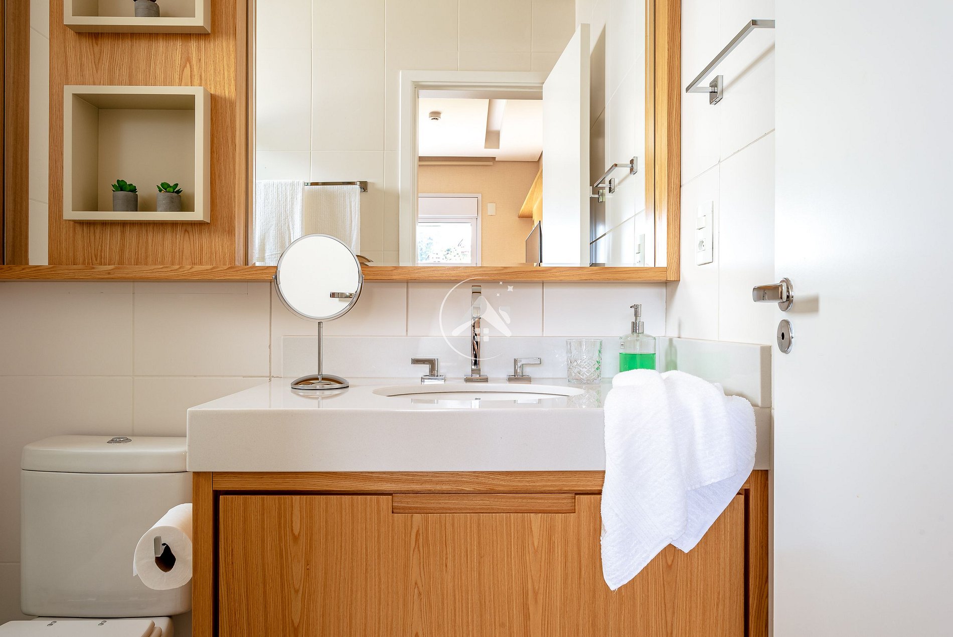 Piscina aquecida, piscina aberta, academia, beach tennis, quadra de tênnis, portaria 24 horas e 2 vagas na garagem.