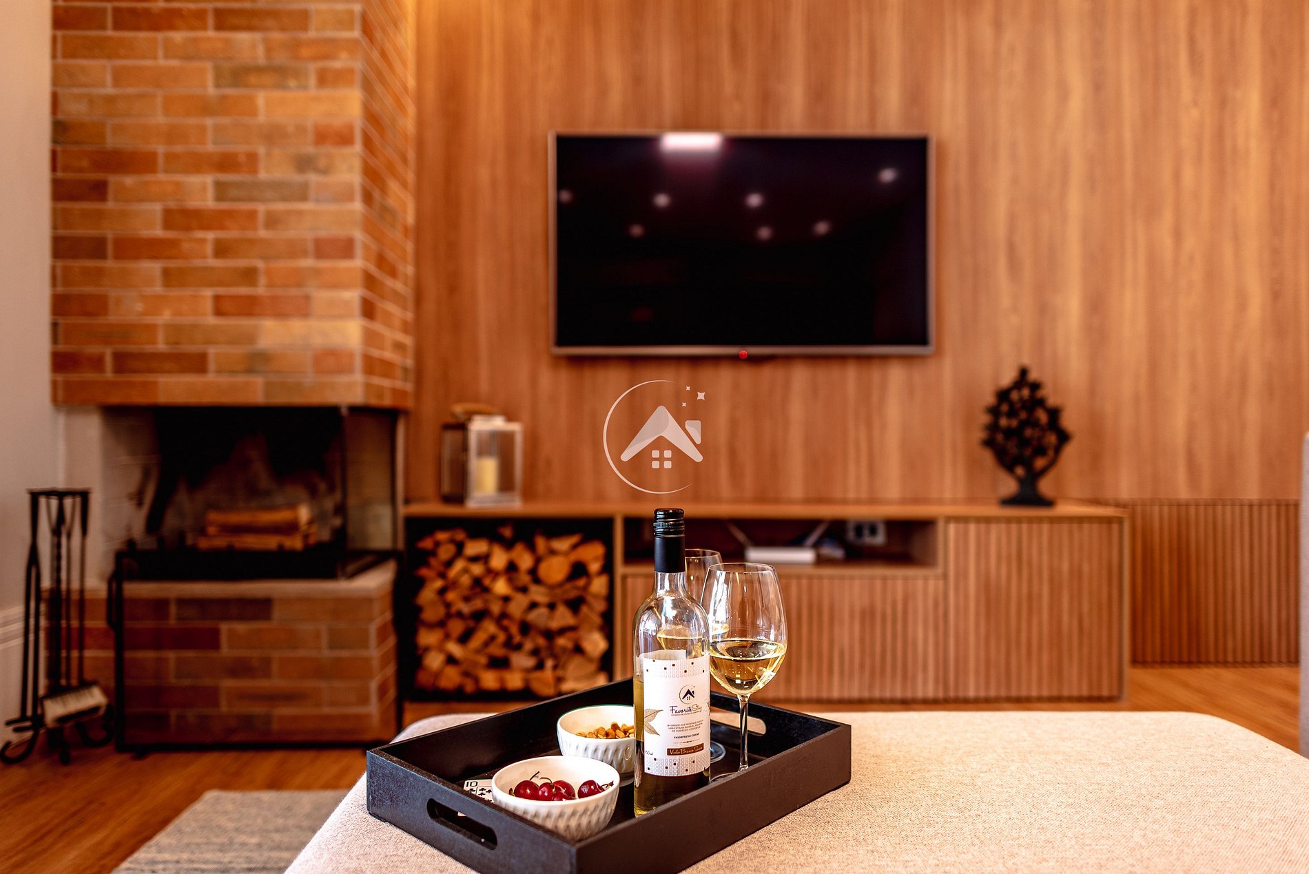Para os dias mais frios, o cantinho da lareira é perfeito para abrir um vinho e aproveitar a companhia de quem está junto. Assistir a um filme ou série na Smart TV , após um dia de passeios, também é uma ótima ideia. Aplicativos como Netflix, Amazon Prime, Disney+, Globoplay estão disponíveis em todas as TVs e podem ser acessados mediante usuário e senha do hóspede.
