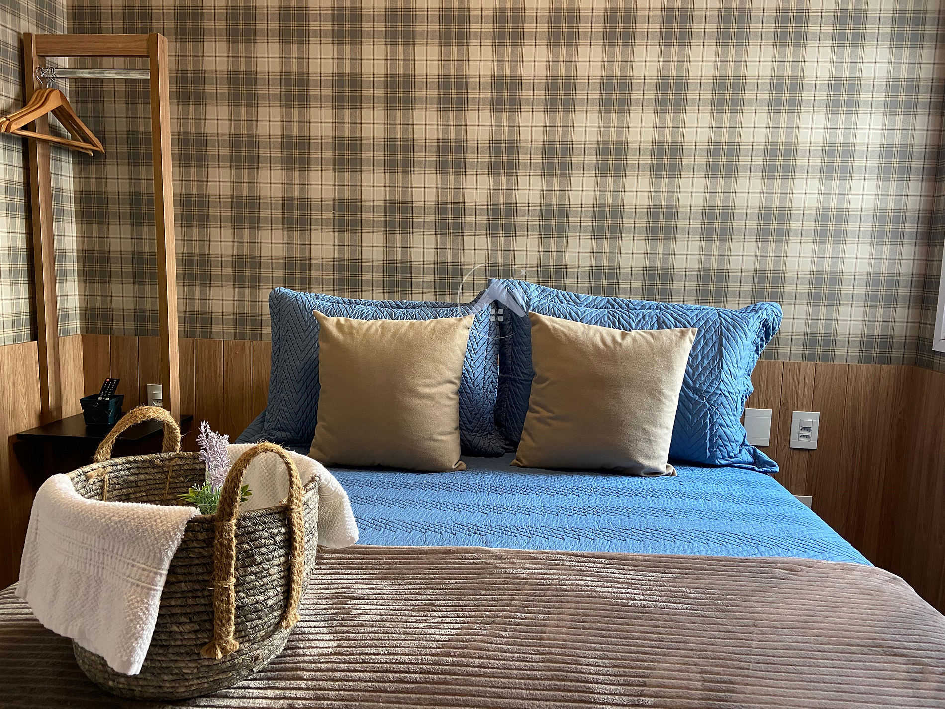 Oferecemos roupa de cama e banho padrão hoteleiro, assim como travesseiros e cobertores, para receber você com todo cuidado.