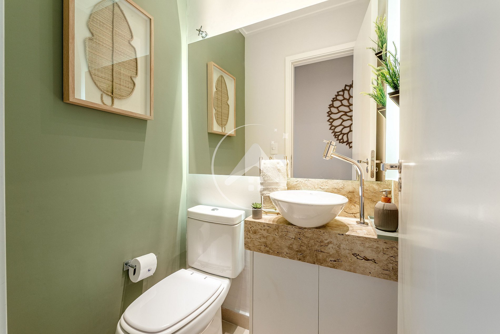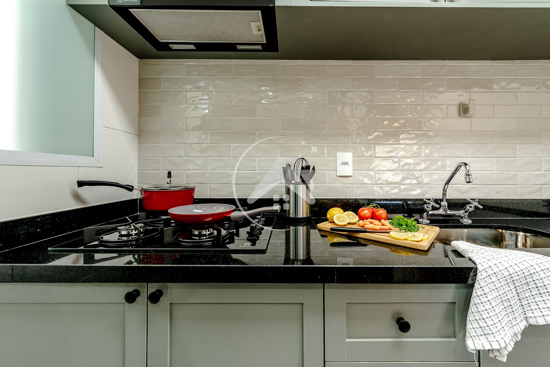 O espaço da cozinha é integrado à lavanderia, que conta com máquina lava e seca, varal, tábua de passar e ferro. Itens essenciais para garantir a tranquilidade que merece.