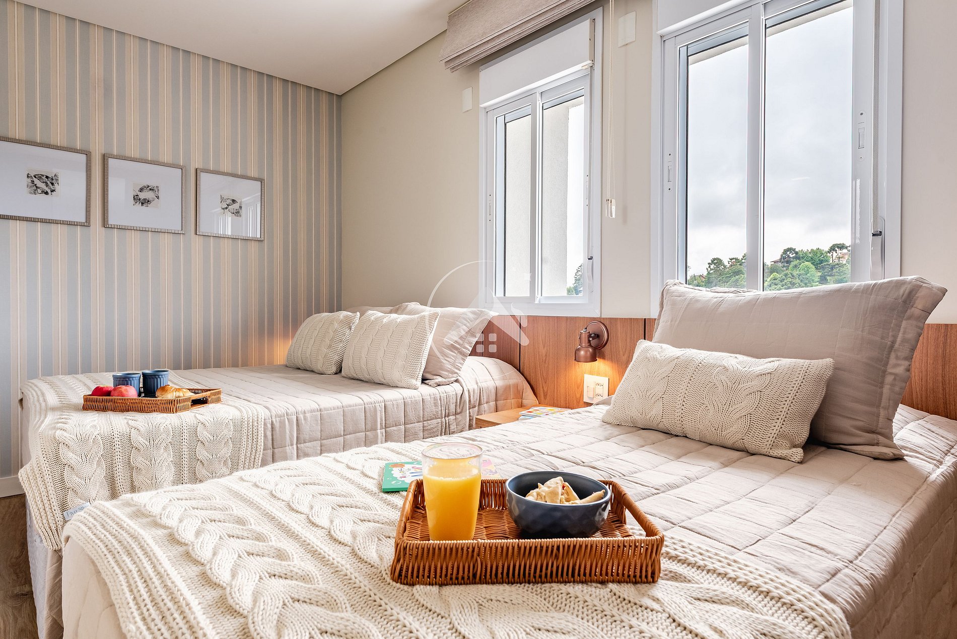 - Suíte 4: duas camas de solteiro, Smart TV e arara para roupas (andar principal).