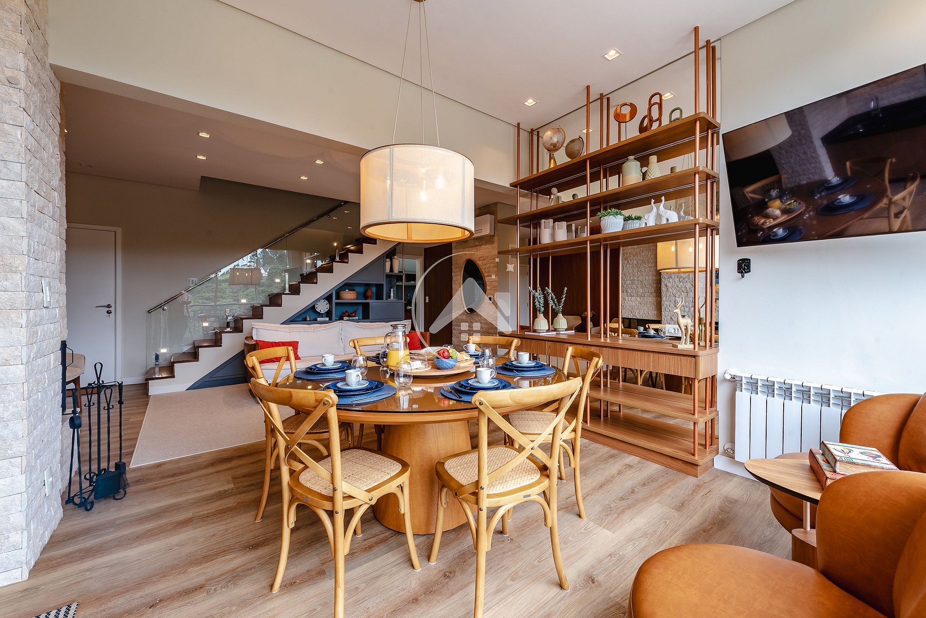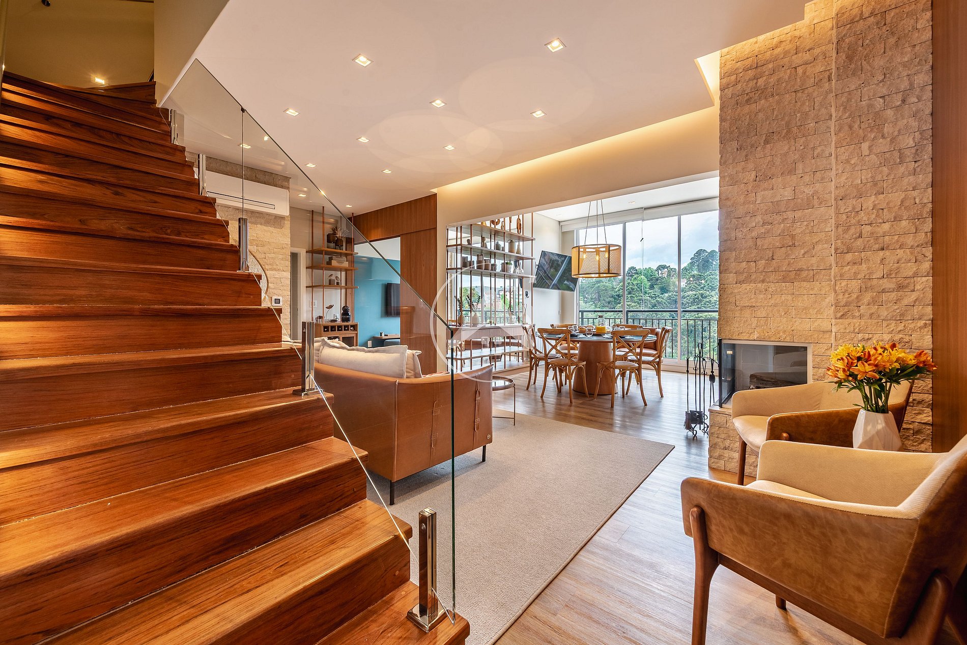 AMPLA SALA DE ESTAR INTEGRADA COM ÁREA GOURMET + SALA DE TV COM PRIVACIDADE (ANDAR PRINCIPAL):