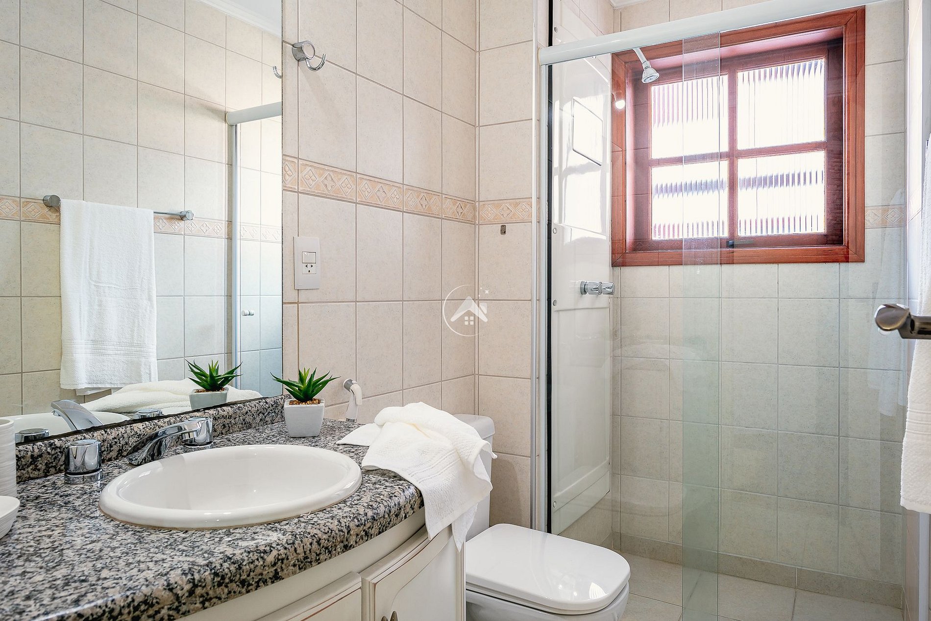 A suíte conta com terraço fechado com vidro articulado. Há armários em todos os quartos. Além do banheiro da suíte, há um segundo banheiro no corredor para atender aos hóspedes. Deixamos à disposição secador de cabelos.