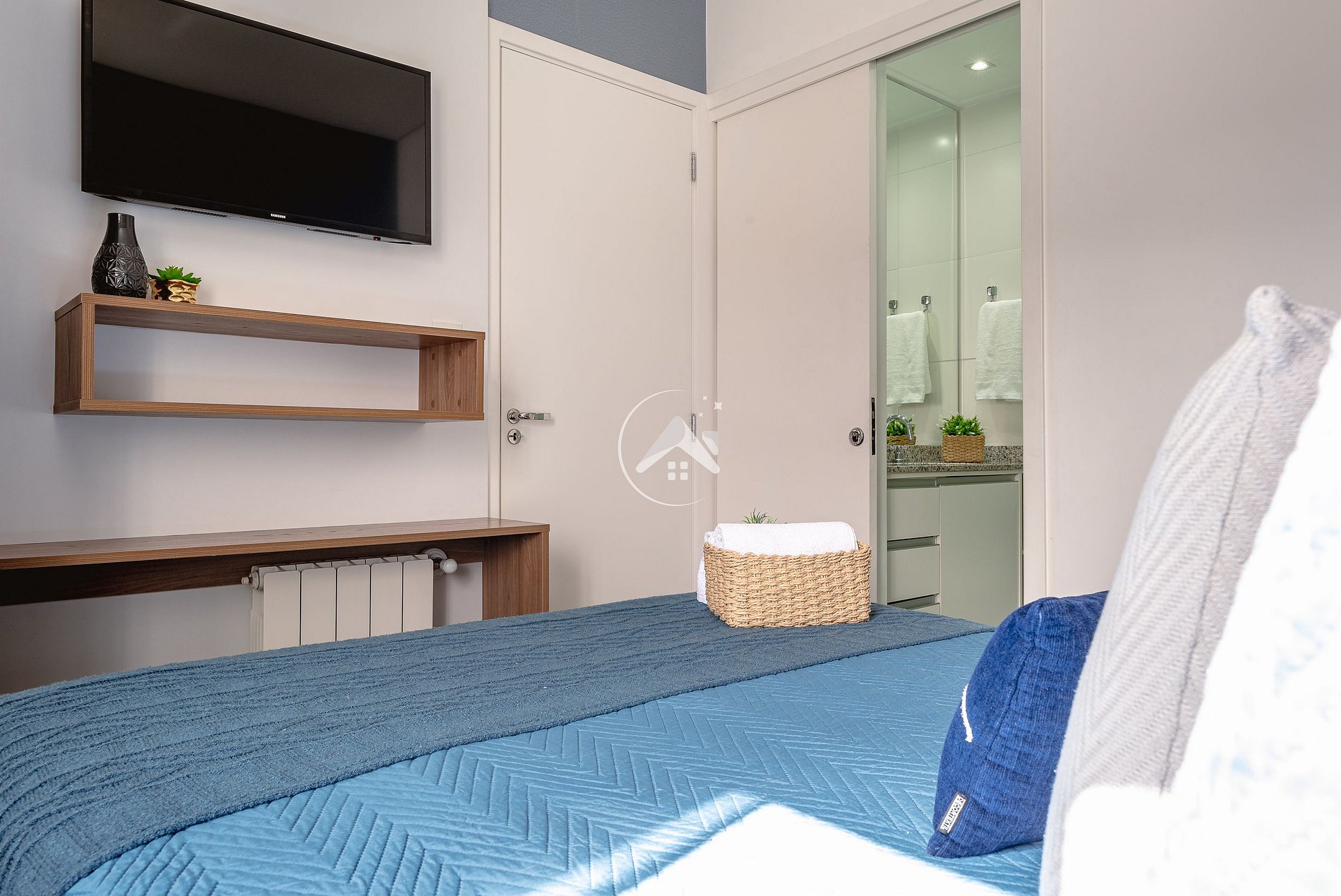 Todos os quartos têm Smart TV e armários. Além dos dois banheiros das suítes, há um terceiro para atender aos hóspedes.