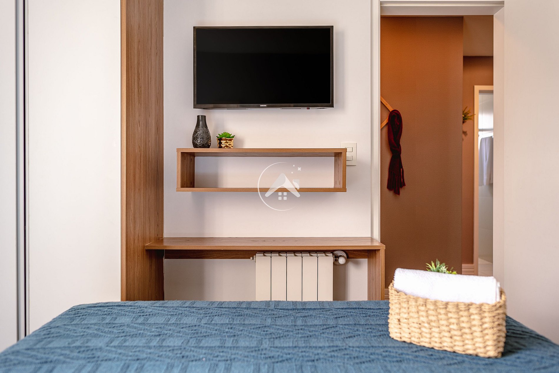 Escrivaninha em um dos quartos, com tomada próxima, e WI-FI gratuito de alta potência em todo o apartamento. Aplicativos como Netflix, Amazon Prime, Disney+, Globoplay estão disponíveis em todas as TVs e podem ser acessados mediante usuário e senha do hóspede.