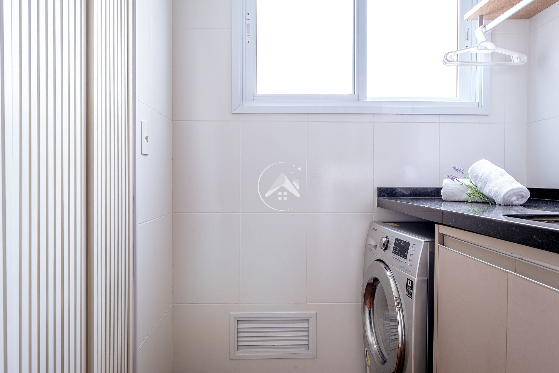 Oferecemos os utensílios para cozinhar e servir (panelas, travessas, pratos, entre outros), além de máquina Nespresso, filtro de água, sanduicheira, torradeira, liquidificador, forno e micro-ondas. Máquina lava e seca, varal, tábua de passar e ferro estarão disponíveis na lavanderia.