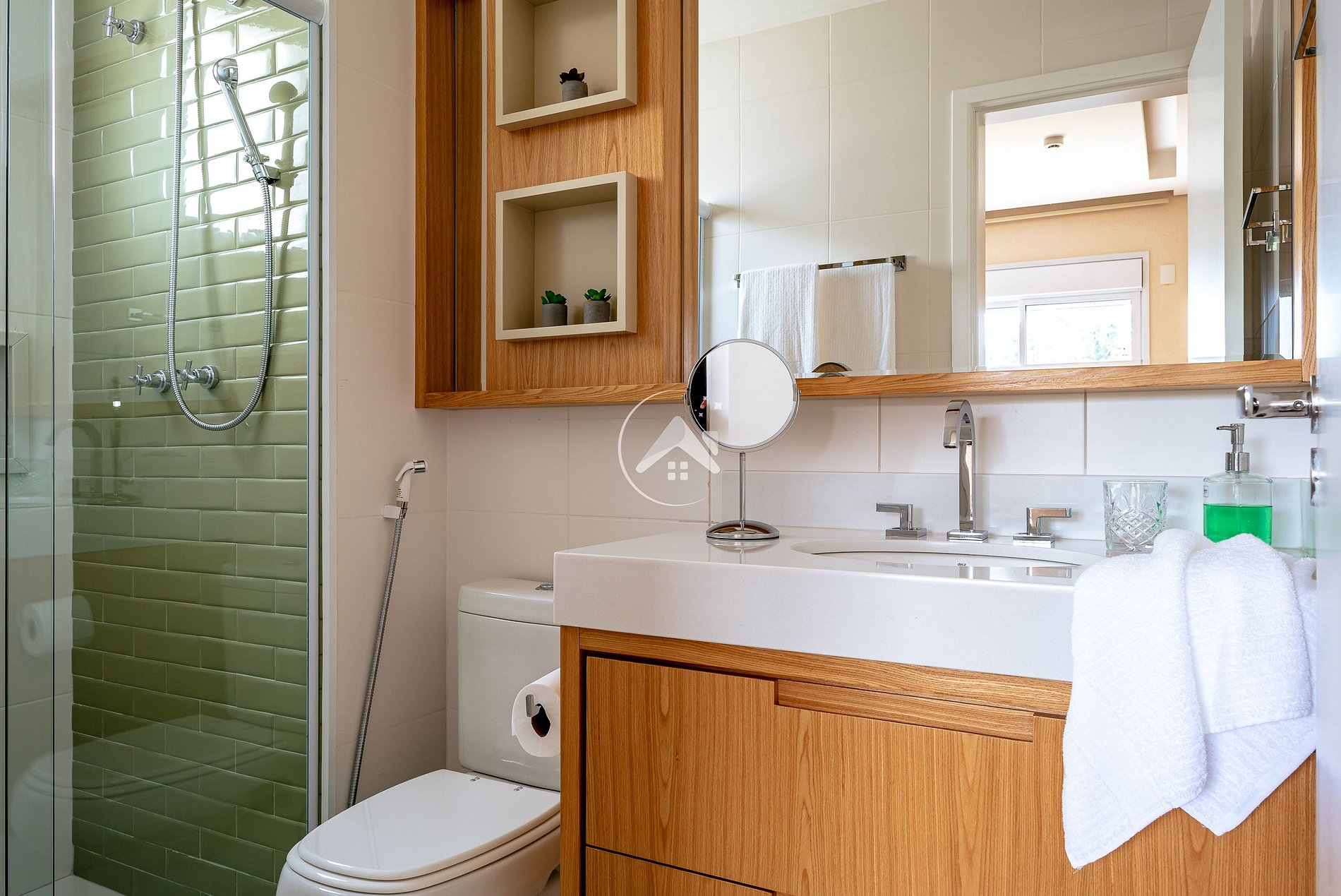 Oferecemos roupa de cama e banho padrão hotelaria, assim como travesseiros e cobertores, para que tenha uma estadia completa.