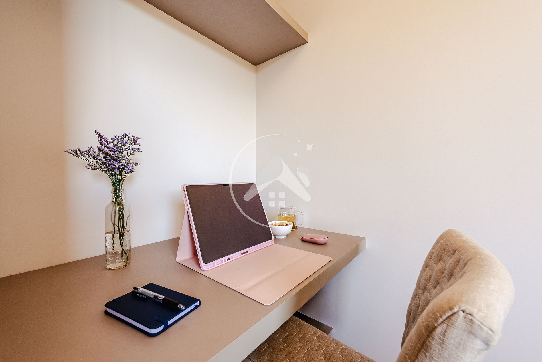 - Suíte com cama queen, Smart TV e armário - escrivaninha, com cadeira, para home office;