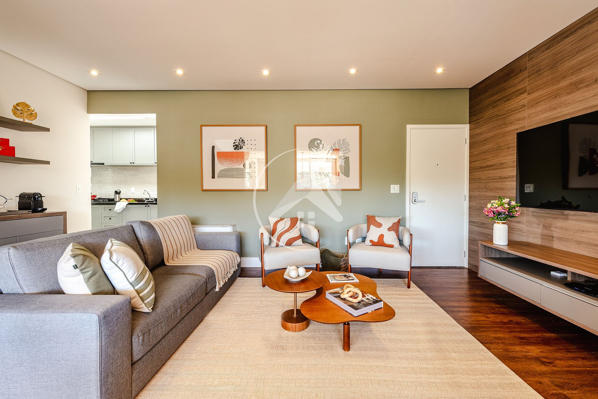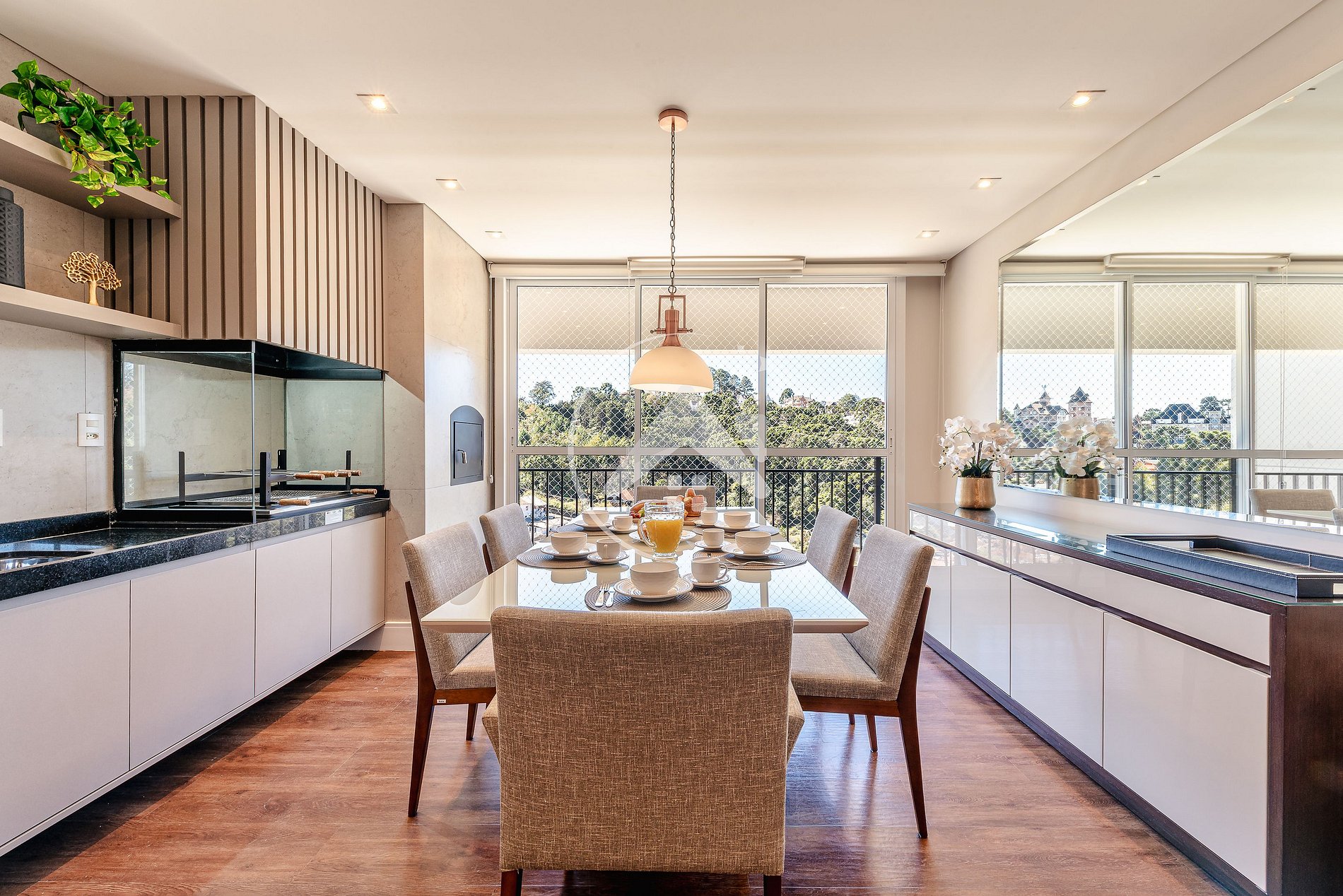 SALA DE TV INTEGRADA AO ESPAÇO GOURMET COM CHURRASQUEIRA/FORNO DE PIZZA E CALEFAÇÃO: