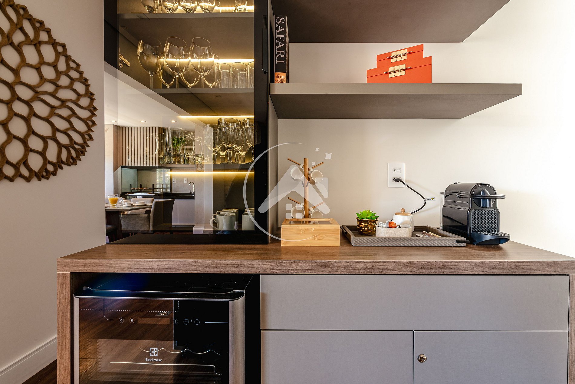 Para completar a experiência, o cantinho do café com máquina Nespresso para começar o dia com uma bebida quentinha ou relaxar à tarde. O ambiente também conta com calefação, garantindo conforto térmico.